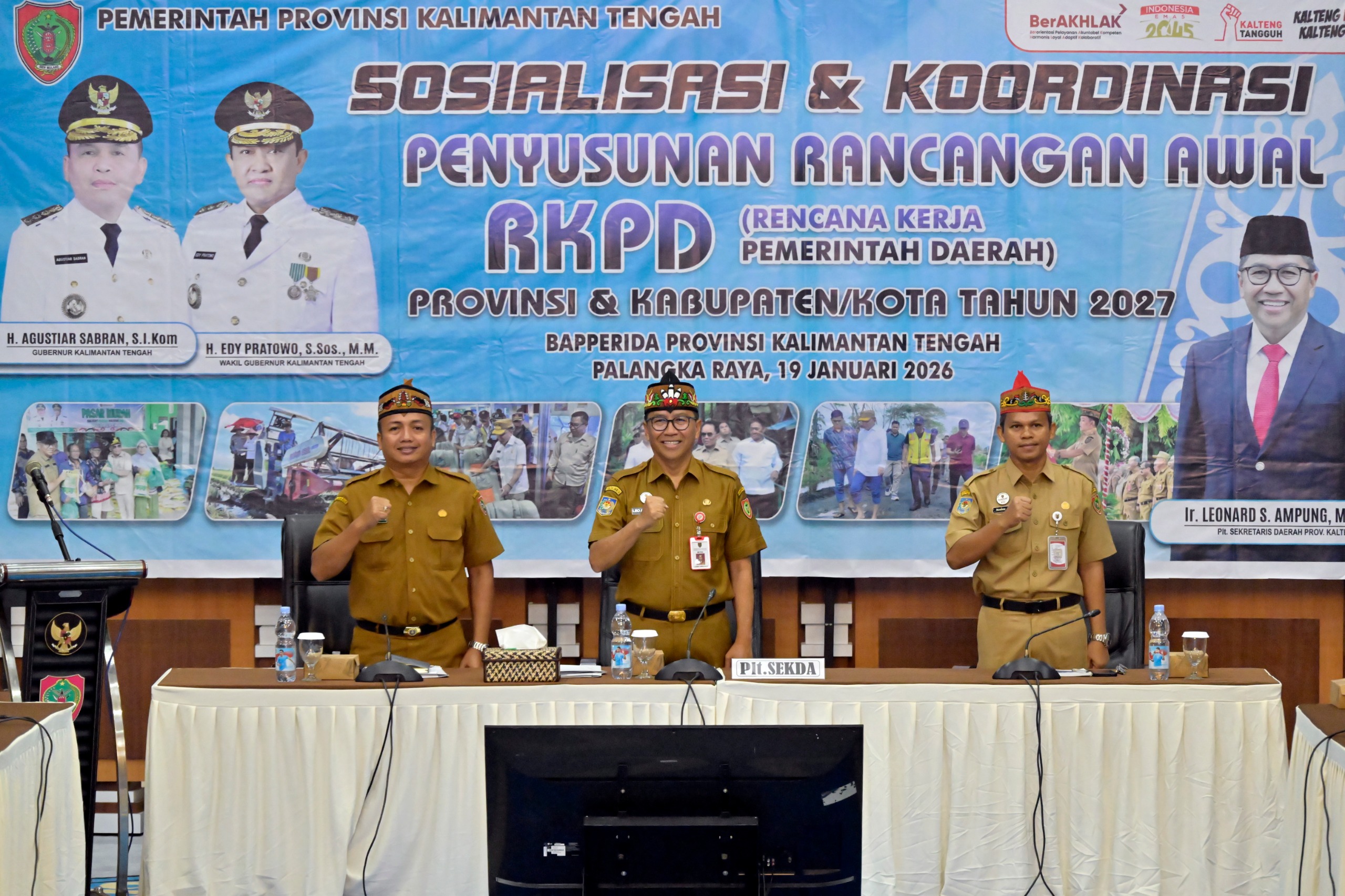 Pelaksana Tugas (Plt) Sekretaris Daerah Provinsi Kalimantan Tengah yang juga Kepala BAPPERIDA Prov. Kalteng Leonard S. Ampung, dalam sambutannya sekaligus membuka acara tersebut menyampaikan bahwa sosialisasi ini bertujuan memberikan pemahaman menyeluruh terkait tematik pembangunan, agenda penyusunan, kamus usulan, prioritas, serta sasaran pembangunan yang telah dirumuskan dalam Ranwal RKPD Provinsi Kalimantan Tengah Tahun 2027.